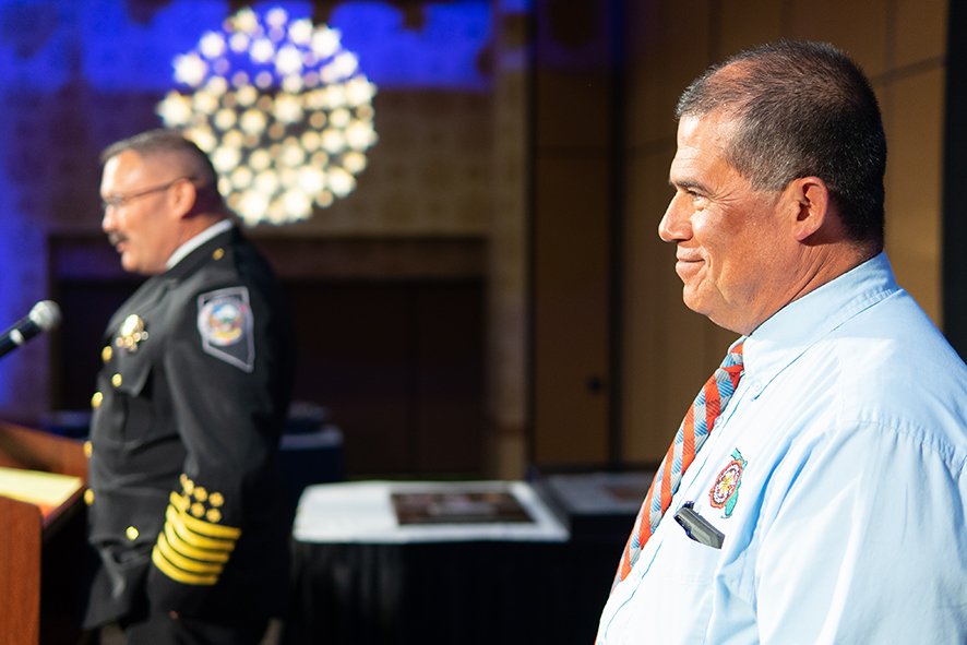 B – Incendios de vehículos y a gas. Los oficiales repasaron los cambios en la construcción de vehículos y las preocupaciones con el ataque de fuego. Todo el entrenamiento fue de acuerdo con NFPA 1403.